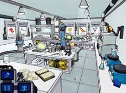 Zaneprázdnený profesor Scientifix v jeho laboratóriu.