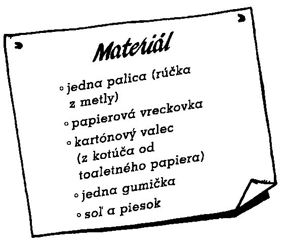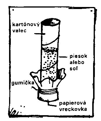 Preloženú papierovú vreckovku pripevníte gumičkou na jeden koniec kartónového valca. Potom do valca nasypte asi do výšky 7-8 cm vysušený piesok alebo soľ a ste pripravený na pokus.