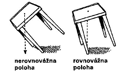 Pokúste sa postaviť stoličku na dve nohy. Je možné udržať ju v rovnováhe ? Ak sa vám to podarilo, tak ste našli polohu, kedy myslená priamka idúca kolmo dole z ťažiska stoličky prechádza medzi dvoma nohami, na ktorých je stolička postavená.Ale v tomto prípade hovoríme o nestabilnej rovnováhe, lebo stolička nezotrvá v rovnovážnej polohe, ale po chvíli sa vychýli.