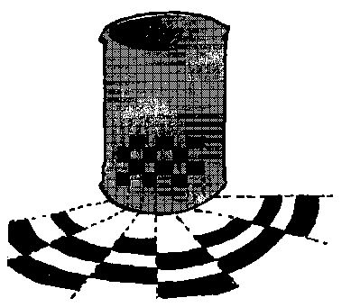 Ak však chcete vytvoriť šachovnicu pomocou kružidla, ktorého stred je vo východiskovom bode, nakreslite viacero oblúkov. Potom vybrané políčka vyfarbite tak ako na šachovnici. Na alobale konzervy sa vám objaví presný obraz šachovnice.
