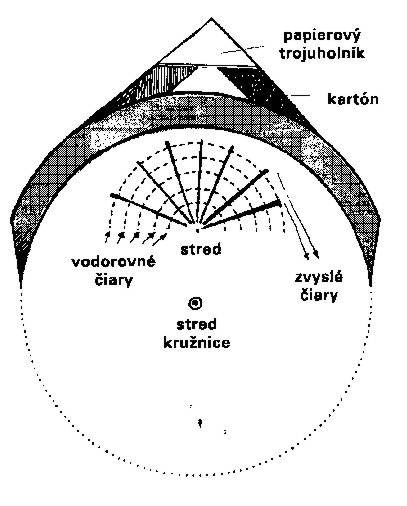 Na list papiera narysujte kružnicu zhodnú s priemerom konzervy. Naznačte stred kruhu a jeden bod, ktorý je v polovici medzi stredom a kružnicou. Tento bod voláme východiskový. Pomocou pravítka nakreslite niekoľko priamok prechádzajúcich východiskovým bodom. Na narysovanú kružnicu položte konzervu. Nakreslené čiary vytvoria na alobale zvislé rovnobežné čiary.