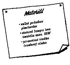 Nasledujúci pokus vám umožní urobiť zaujímavé pozorovania. Plechovku po odstránení dna položte na lampu. Pomocou gumičky silno pripevnite priesvitné viečko na vrch plechovky (viečko sa nesmie dotýkať žiarovky).