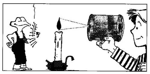 Na dne prázdnej plechovky urobte dieru s priemerom asi 2 mm. Dve vrstvy voskového alebo pauzovacieho papiera pripevnite na otvor konzervy lepiacou páskou. Teraz opatrne postavte zapálenú sviečku pod dieru. Jej prevrátený obraz sa ukáže na voskovom papieri čiže na obrazovke. Rovnako môžete zobrazovať aj iné predmety, musia však byť dostatočne kontrastné.