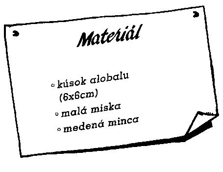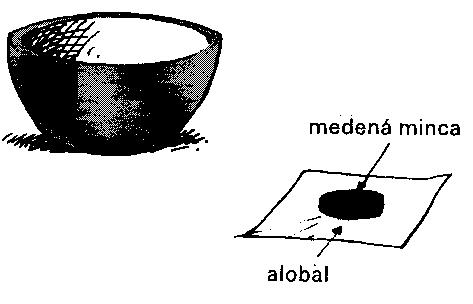 Na dno misky naplnenej vodou dajte alobal. Na alobal položte mincu a zavŕšenie vášho diela je už len otázkou času. Už po dvoch dňoch zbadáte v alobale viacero malých dierok a to presne na miestach, kde je minca položená. Po štyroch dňoch bude alobal celkom zničený.