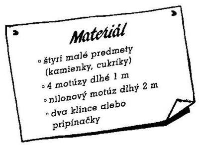 Na koniec každého motúzu upevnite malý predmet. Takto vyrobené kyvadlá zaveste na motúz dlhý 2 metre, vo vzdialenostiach 30 cm od seba.