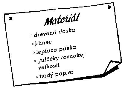 Klince pribite tak, ako vidíte na obrázku. Priestor medzi klincami rozmiestnenými na tej istej vodorovnej čiare musí dovoliť akurát prechod guľôčok. Aby ste dosiahli správny výsledok, čiary na vzdialenosti medzi klincami naneste presne podľa pravítka.