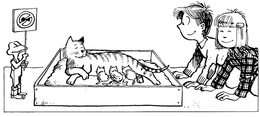 Počas dvoch alebo troch prvých dní po pôrode neprijímajte návštevy „detských jasličiek“, samozrejme okrem domácich, ktorých mačka dobre pozná a ktorí ju svojou prítomnosťou nebudú otravovať.