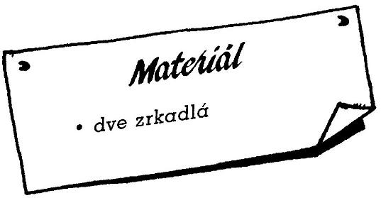 Takisto tieto zrkadlá nebudú odrážať obrátený obraz písmen ani slov. Veď si to vyskúšajte. Ak máte k dispozícii dve veľké zrkadlá, urobte si takýto ďalší postup. Dajte zrkadlá jedno k druhému a postavte sa pred ne. Točte jedným z nich: podľa toho, aké veľký uhol budú spolu zvierať, budete vidieť, ako sa váš obraz donekonečna znásobuje, pričom pre počet obrazov platí jednoduchý vzorec: